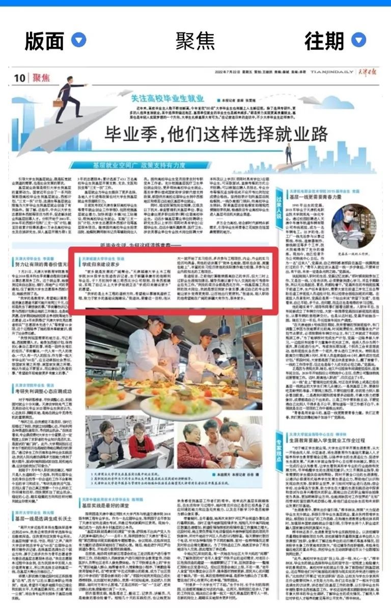 7月22日出版的《天津日報》以“學成歸來建設家鄉”為題報道我校土木工程學院畢業生張迪就業之路,原文如下:“家鄉就是發展的廣闊舞臺。”天津城建大學土木工程學院2018級學生張迪告訴記者,生于新疆阜康市的他順利畢業后,于7月初到... 2022-07-22黨建網以“天津城建大學:扎實推進駐村幫扶工作 打造鄉村振興‘津門禮物’品牌”為題報道我校駐村幫扶工作