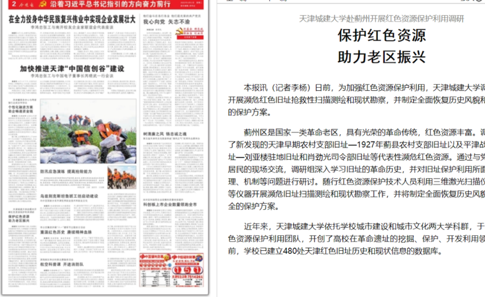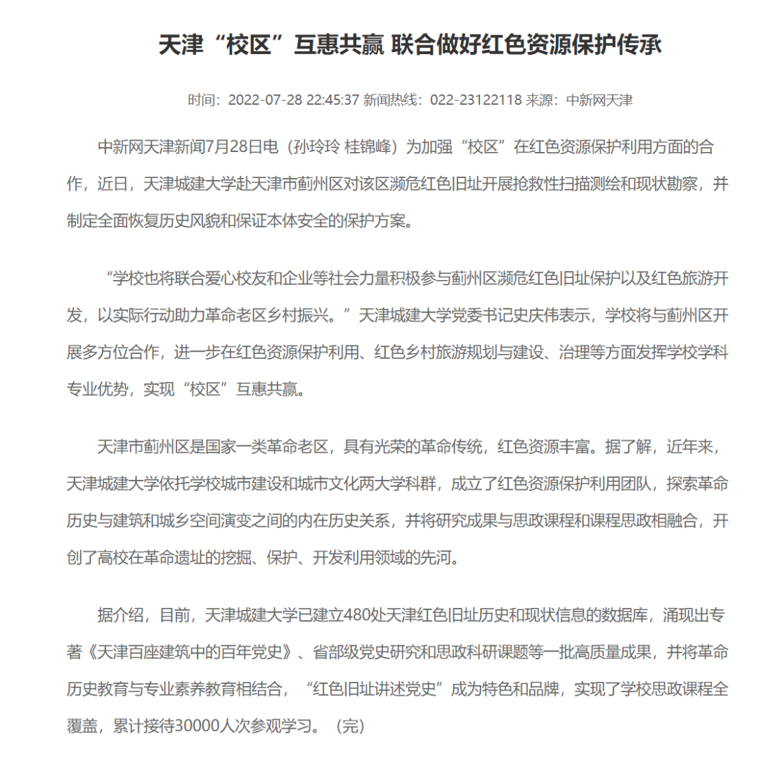 今晚報以“天津城建大學赴薊州開展紅色資源保護利用調研”為題對我校工作進行報道
