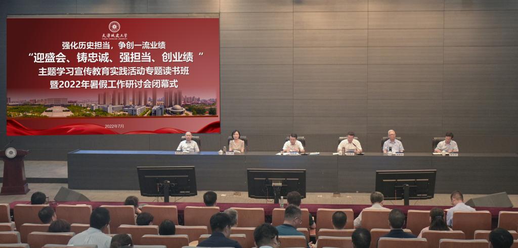 會上,黨委宣傳部部長楊靜代表學校思想政治工作委員會,就研討會的學習討論成果,以《高質量構建城建大學思想政治工作體系 提升鑄魂育人新成效》為題進行了匯報。人事處處長高陽圍繞學校第四聘期工作,以《推動改革,回應關切 科學謀劃第四聘期工作》為題就兩天來的研討成果進行匯報。教務處處長趙國敏從七個部分匯報了構建本科招生機制專題會研討成果《天津城建大學本科生招生宣傳工作實施方案》。科技處處長何繼新圍繞“青年教師科研能力培育提升”這一主題,就研討成果《天津城建大學提升青年教師科研能力發展四年行動計劃(2022-2026)》進行匯報。