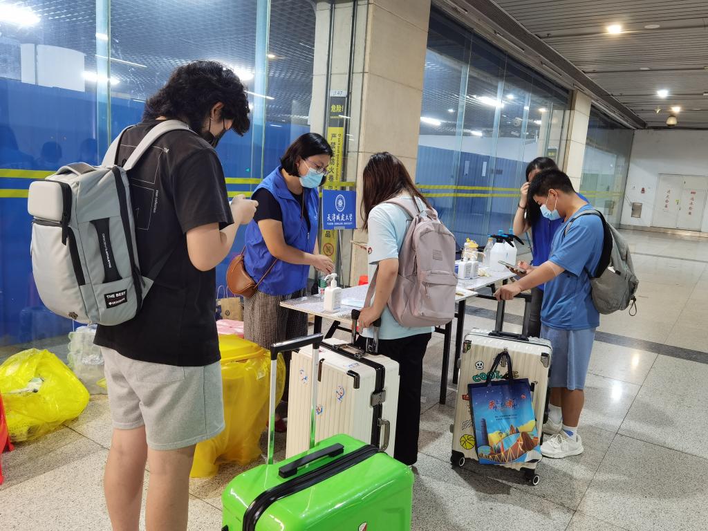 為更好服務(wù)“三站一場”返校學(xué)生,學(xué)校派出69名輔導(dǎo)員,化身“接站員”“引導(dǎo)員”和“測溫員”,對經(jīng)“三站一場”返校學(xué)生提供點(diǎn)對點(diǎn)管道式接站服務(wù),引導(dǎo)外地返津?qū)W生完成測溫,查驗(yàn)雙碼、掃入校碼及乘車,并根據(jù)學(xué)生抵津時(shí)間和站點(diǎn)實(shí)際適時(shí)調(diào)度84輛車,保障同學(xué)們安全“到家”。