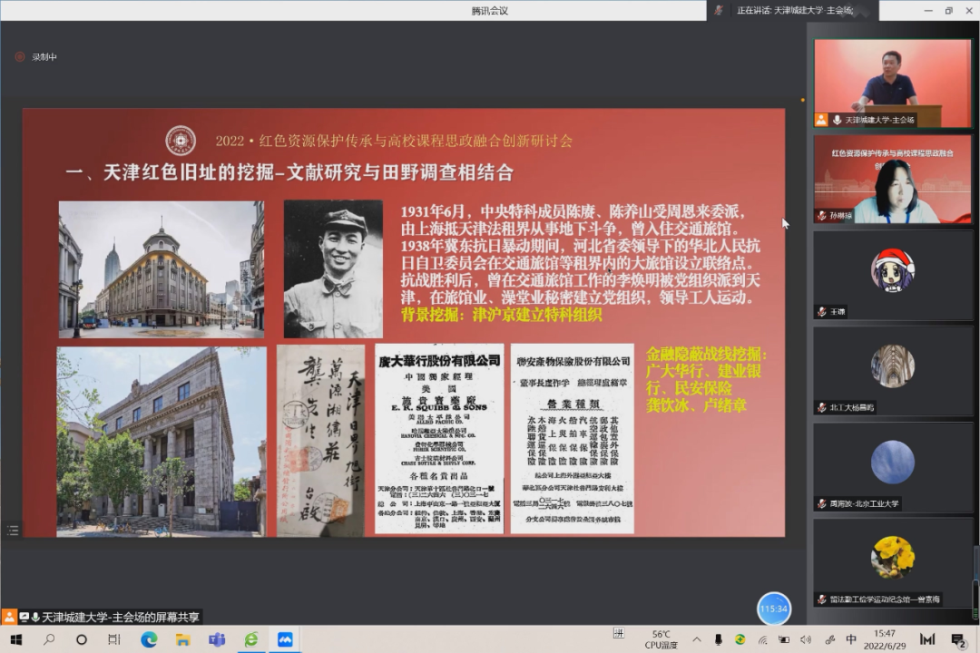 6月29日,由天津市委宣傳部、天津市教育兩委、天津市文物局、天津市委黨校指導(dǎo),我校主辦的“紅色資源保護(hù)傳承與高校課程思政融合創(chuàng)新研討會(huì)”在我校建筑藝術(shù)館召開。會(huì)議圍繞“紅色資源育人 三地館校協(xié)同”進(jìn)行經(jīng)驗(yàn)交流和學(xué)術(shù)研討,共同謀劃京津冀地區(qū)紅色資源與高校課程思政融合創(chuàng)新的新篇章。北京市文物局、河北省文物局、天津城建大學(xué)、河北工業(yè)大學(xué)、北京工業(yè)大學(xué)、中國共產(chǎn)黨早期北京革命活動(dòng)紀(jì)念館(北大紅樓)、天津博物館、留法勤工儉學(xué)運(yùn)動(dòng)紀(jì)念館、天津梁?jiǎn)⒊o(jì)念館、中共中央北方局舊址紀(jì)念館、中共天津黨史紀(jì)念館、中國近現(xiàn)代史史料學(xué)學(xué)會(huì)、中國紅色文化研究會(huì)等單位的16位專家學(xué)者圍繞會(huì)議主題作發(fā)言。特摘編會(huì)議專家發(fā)言,以饗讀者。本期介紹我校紅色資源保護(hù)利用研究中心主任蘭巍老師、河北工業(yè)大學(xué)馬克思主義學(xué)院黨委書記孫琳瓊教授在會(huì)上所做主旨發(fā)言,以及8位來自不同領(lǐng)域?qū)<业淖杂砂l(fā)言。