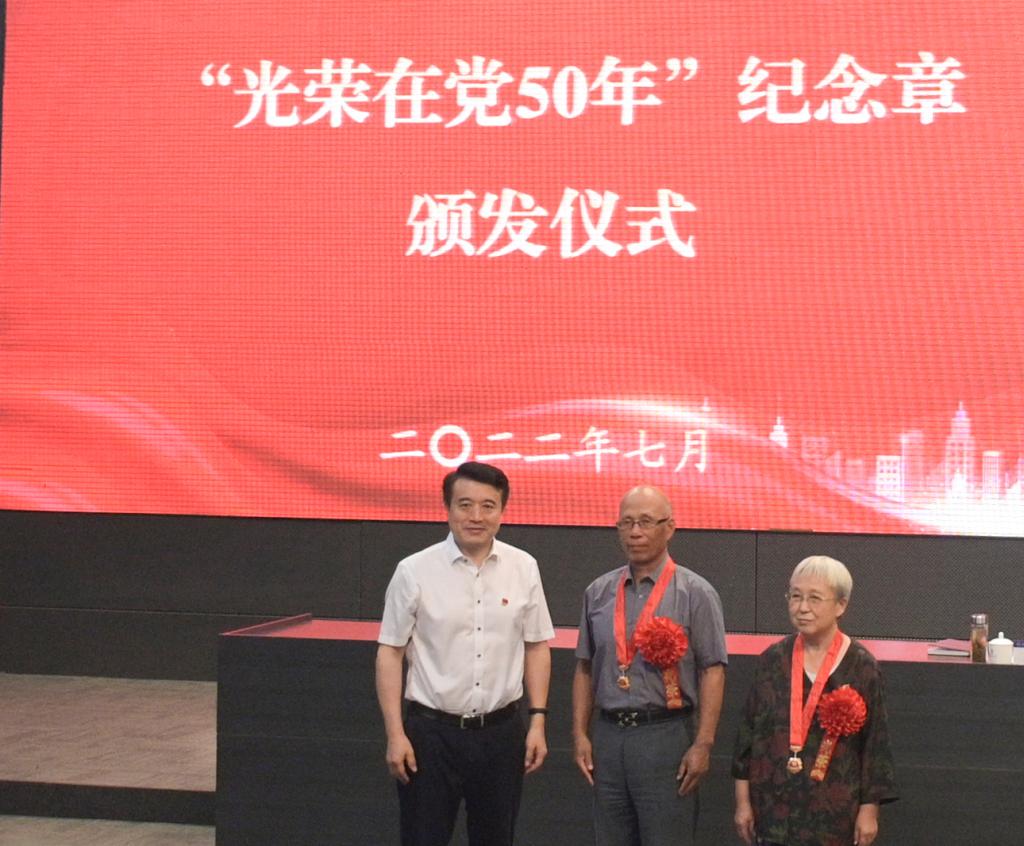 校黨委書記史慶偉為2名老黨員頒發(fā)“光榮在黨50年”紀(jì)念章,現(xiàn)場響起最熱烈而持久的掌聲,向老黨員致以崇高的敬意和衷心的祝福。