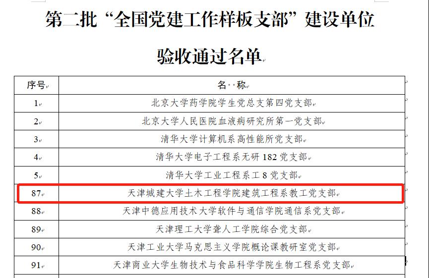 近日,教育部辦公廳公布第二批新時代高校黨建示范創(chuàng)建和質(zhì)量創(chuàng)優(yōu)工作和首批高校“雙帶頭人”教師黨支部書記工作室建設(shè)單位驗收通過名單。我校土木工程學(xué)院建筑工程系教工黨支部順利通過驗收。