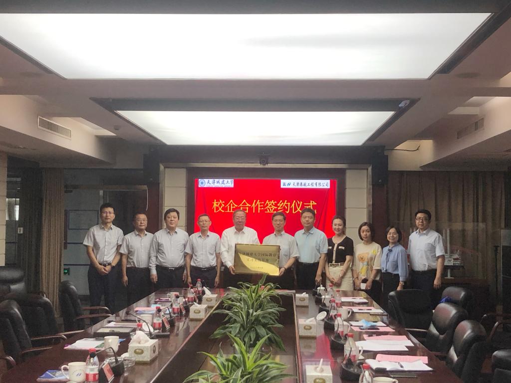 在融洽的氛圍中,國際教育學院與港航公司舉行了天津城建大學國際教育實習實踐基地掛牌儀式,今后校企雙方將在專業實習、產教融合、協同育人及成果轉化、博士后培養、創新課題等方面開展更為深入的合作與交流。