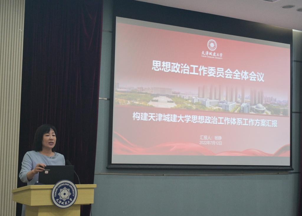 會上,黨委宣傳部部長楊靜以“構建天津城建大學思想政治工作體系工作方案”為題,從領導體制、工作機制、高質量構建思想政治工作體系工作方案三個方面向與會人員進行了匯報。楊靜表示,全校上下需要站在立德樹人的育人角度強認識,站在維護安全的政治高度守底線,站在學校高質量發展維度抓落實。讓思想政治工作與學校教育事業發展融合起來、與學生成長過程結合起來、與教書育人實踐綜合起來,將廣大天城大學子培養成為有真學問真本領、有大愛大德大情懷的人。