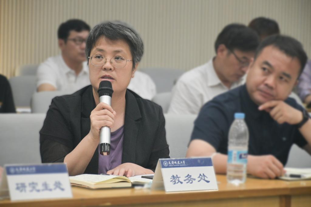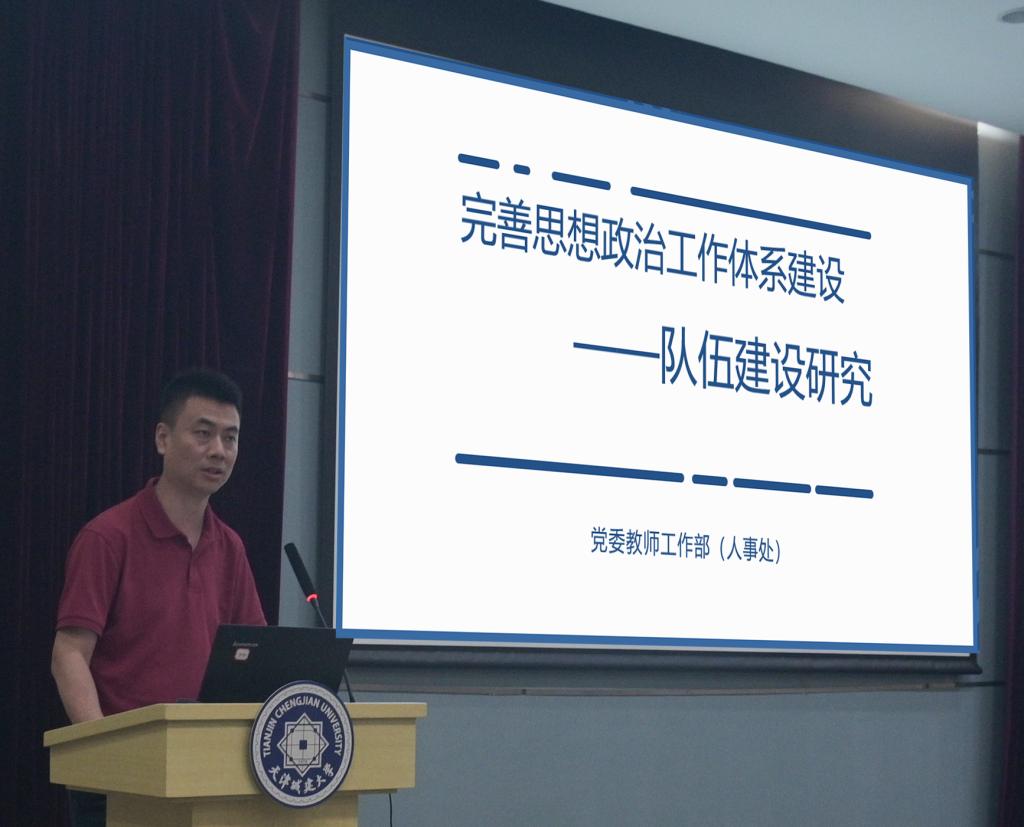 黨委教工部部長高陽以“完善思想政治工作體系建設——隊伍建設研究”為題,圍繞高素質教師隊伍建設、高素質思想政治工作和黨務工作隊伍建設、馬克思主義學者和青年馬克思主義者培養(yǎng)等方面介紹了近年來學校教師隊伍建設情況以及工作開展過程中面臨的問題。并就“如何充分發(fā)揮高層次人才師德師風示范帶頭作用”“發(fā)揮師德評價結果在績效考核、職稱評聘、評先評優(yōu)等方面的正向引領作用”“進一步完善學校教師思想政治和師德師風建設體系”等和與會人員開展交流研討。