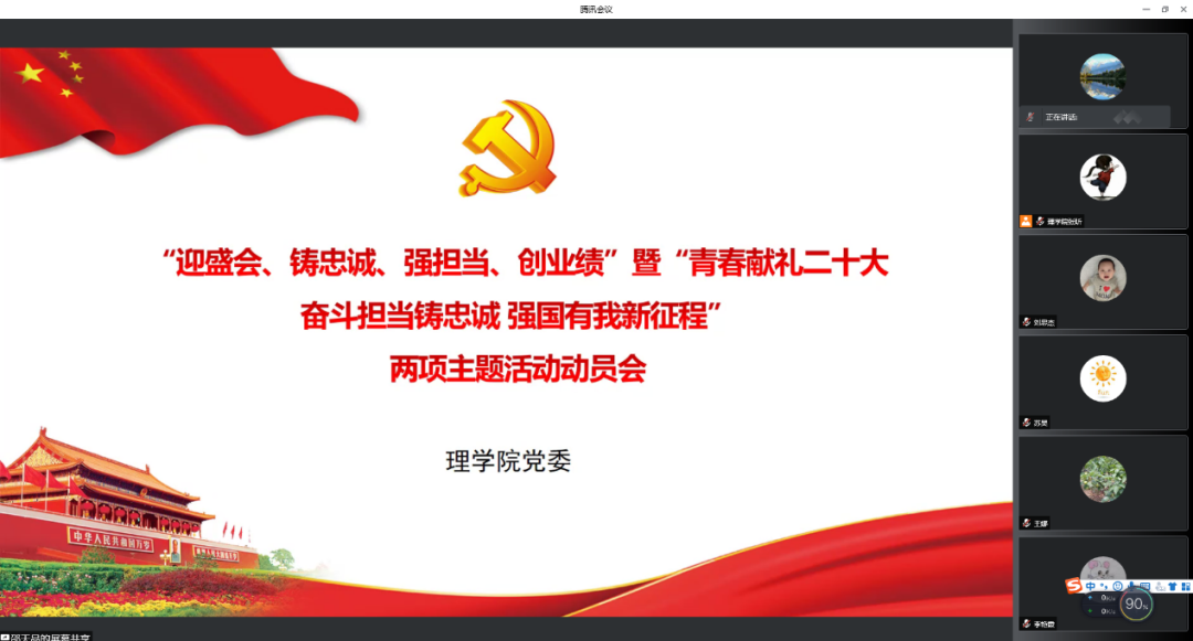 為進一步鞏固黨史學習教育成果,迎接黨的二十大勝利召開,理學院黨委于5月4日以線上線下相結合的方式召開“迎盛會、鑄忠誠、強擔當、創業績”主題學習宣傳教育實踐活動暨“青春獻禮二十大 奮斗擔當鑄忠誠 強國有我新征程”主題宣傳教育活動動員部署會。會議由理學院黨委書記談廷風主持,學院全體教職工及學生黨員、發展對象、積極分子代表參加會議。