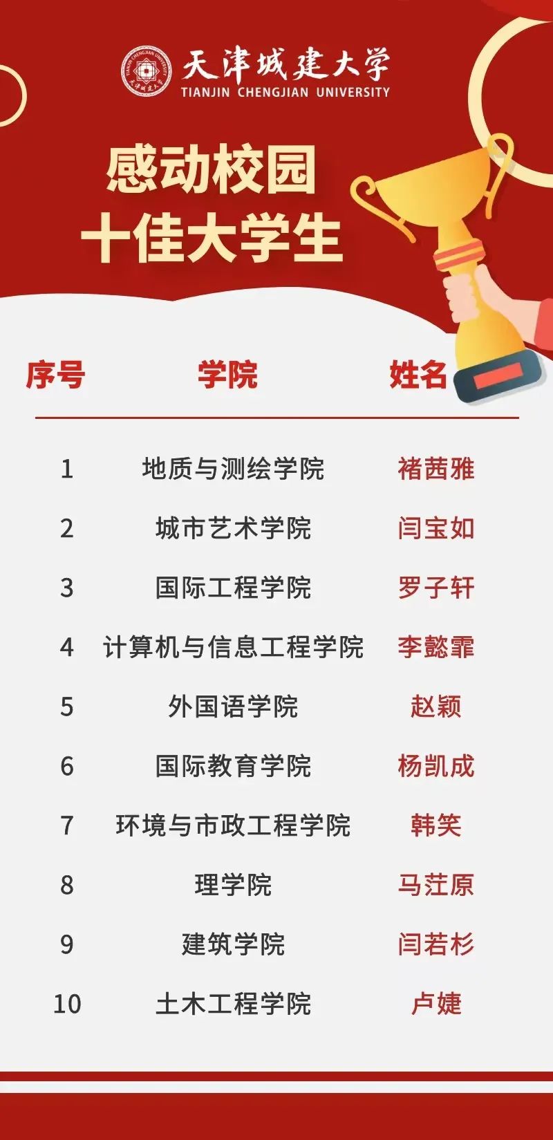 經過激烈角逐,最終,地質與測繪學院褚茜雅等10位同學獲評2022年“感動校園十佳大學生”榮譽稱號。