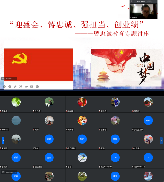4月28日上午,離退休工作處黨委通過騰訊會議開展忠誠教育專題培訓,會議邀請離退休第十黨支部書記崔德華作題為“感悟偉大建黨精神,筑牢政治忠誠”的專題講座,全體在職黨員、離退休黨支部書記、委員、部分離退休黨員等百余人參會。