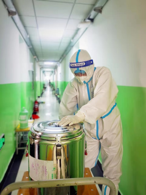 作為春華齋物資供應服務組組長,在土木學院有關領導和住樓輔導員的協助下,同10名志愿者老師一起努力完成送水、送餐任務。他不顧腿傷的隱隱作痛,帶頭沖在前,同時,開動腦筋、克服困難、創新工作方法,注重提高保障能力與水平。在工作中,牽掛學生,堅持一個都不能少的原則,細心思考提高送餐送水的效率,高效使用小推車送水,切實保障學生每天都能用上熱水,得到學生們的肯定。