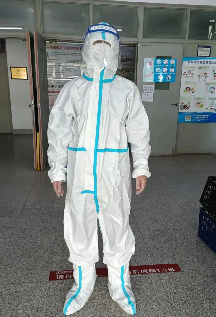 于錄,理學(xué)院教師,中共黨員。作為學(xué)生宿舍樓宇服務(wù)組的一員,先后服務(wù)于“駿善齋”和“懷仁齋”兩個(gè)宿舍樓,為同學(xué)們的日常生活提供保障。一周以來(lái),他穿過(guò)厚重的防護(hù)服爬樓為同學(xué)們送水、送餐到寢室門口;帶領(lǐng)同學(xué)們有序進(jìn)行核酸檢測(cè)、去浴室洗澡;為有需求的同學(xué)們及時(shí)提供需要的幫助。在緊張的志愿服務(wù)之外,為不耽誤留學(xué)生的課程,他將上課時(shí)間調(diào)整到了晚上,保證了課程的連續(xù)進(jìn)行。在經(jīng)歷了“大白”“小紅”“小藍(lán)”的身份切換之后,他深刻感覺(jué)到了作為一名黨員教師的使命與擔(dān)當(dāng),保護(hù)好同學(xué)們的身體健康與學(xué)習(xí)生活的順利進(jìn)行是當(dāng)前最重要的工作。