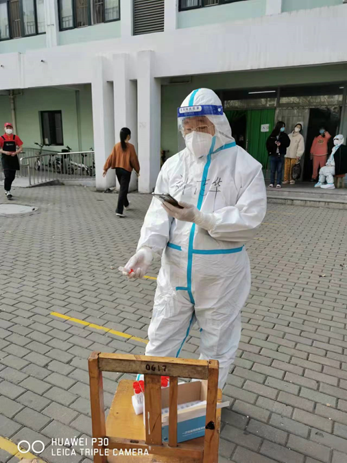 潘玉恒,計(jì)算機(jī)與信息工程學(xué)院教師,中共黨員。面對(duì)疫情,潘玉恒老師立刻作為“紅馬甲”投入到志愿服務(wù)中。她主要負(fù)責(zé)在“春華齋”值守,組織學(xué)生做核酸,運(yùn)送物資。執(zhí)勤之余,通過(guò)學(xué)生的朋友圈以及所聯(lián)系的入黨積極分子,了解學(xué)生的需求和思想動(dòng)態(tài),及時(shí)給學(xué)生送書(shū)和必需品。通過(guò)志愿服務(wù),她看到了天城大師生的團(tuán)結(jié)、努力和拼搏,堅(jiān)信一定能夠戰(zhàn)勝疫情,待到解封時(shí),一起看城大校園的春花爛漫。