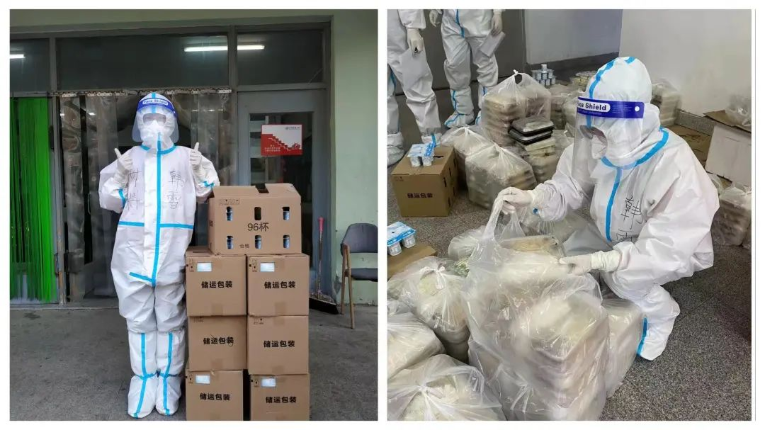 韓雪,材料科學(xué)與工程學(xué)院教師,中共黨員。面對(duì)疫情,承擔(dān)崇禮齋600多名學(xué)生的核酸檢測(cè)秩序維護(hù)和樓內(nèi)物資配送工作。每天早7點(diǎn)來(lái)到宿舍樓,身穿防護(hù)服維護(hù)核酸檢測(cè)秩序,分發(fā)早午晚餐、水果、酸奶、礦泉水,帶領(lǐng)學(xué)生打熱水、洗澡,連續(xù)工作12 小時(shí)。防護(hù)面罩上的水汽模糊了視線,N95口罩在臉上勾勒了勒痕,防護(hù)服內(nèi)的衣服濕了又濕,這些都不能阻止為學(xué)生帶去溫暖的步伐。