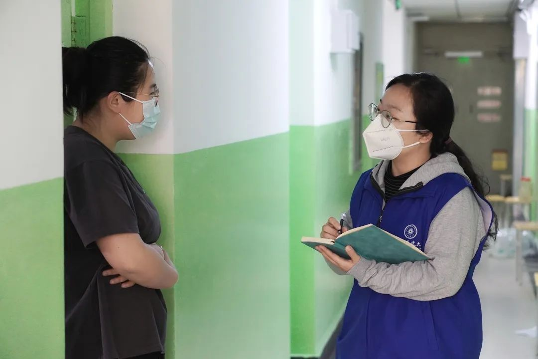 入住公寓同吃同住,守望相助,數據排查、溝通聯絡、催餐取餐、統計人數、搬運物資、心理安撫、出入登記、處理學生身體不適等突發事件……公寓門口、食堂門口、浴室門口,到處可見他們的身影。