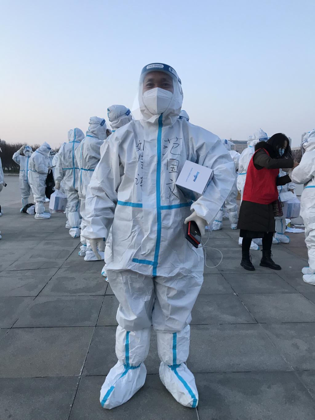 王棟,城市藝術學院教師,中共黨員。積極響應學校黨委號召,第一時間入校參加志愿服務工作。在宿舍門夜班值守中,忘記寒冷,堅守崗位;在宿舍物資搬運過程中,他每天穿著防護服,上下六樓搬運物資,將熱乎的飯菜、新鮮的水果和熱水送到宿舍門口。他說“這次‘戰疫’將成為一次有著特殊意義的人生經歷。抗擊疫情過程中凝結下的師生情、同事情,也將成為我永遠的人生財富。”
