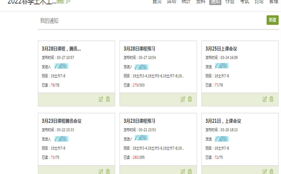根據(jù)前兩年的教學經(jīng)驗,在線上上課之前,通過學習通建立課程、上傳本課程相關課程資料,建立各授課班級,將本課程教學所需教材電子版、PPT、教學注意問題等以通知的形式下發(fā)至每位學生;在每次上課之前,通過學習通向每位同學發(fā)布預習內容,讓學生能提前瀏覽教學內容,對后續(xù)教學內容有初步認識;與各個班級的負責人取得聯(lián)系,建立課程微信群,每次上課前一天,將騰訊會議地址發(fā)到課程微信群,讓學生清楚知道課程教學地址。