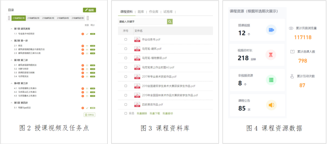 課前由教學(xué)團(tuán)隊(duì)精心錄制好教學(xué)視頻,并導(dǎo)入超星學(xué)習(xí)通《專業(yè)美術(shù)2》課程章節(jié)中,視頻中教師對(duì)每堂課程學(xué)生需要掌握的知識(shí)點(diǎn)進(jìn)行詳細(xì)講解,并布置好課后思考與練習(xí)。同時(shí)教學(xué)視頻要求學(xué)生課前收看完成,教師通過超星學(xué)習(xí)通統(tǒng)計(jì)每位學(xué)生觀看教學(xué)視頻的進(jìn)度,做到課前預(yù)習(xí)。目前本課程在學(xué)習(xí)通已上傳課程組自制教學(xué)視頻12個(gè),總時(shí)長(zhǎng)約218分鐘,上傳課程資料8項(xiàng),覆蓋全部教學(xué)重要知識(shí)點(diǎn)和重點(diǎn)難點(diǎn)問題,學(xué)生可反復(fù)觀看學(xué)習(xí),提高學(xué)習(xí)效率和知識(shí)目標(biāo)達(dá)成率。
