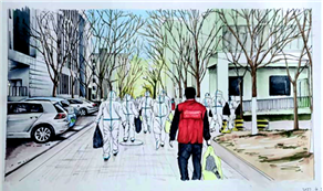 4月1日以來,“新冠肺炎疫情”與城大不期而遇,課程組教師在講授好專業(yè)知識(shí)的同時(shí),積極引導(dǎo)學(xué)生正確看待疫情,保持頭腦理智,正確判斷是非,做好自我防護(hù)。通過課程專題作業(yè)的形式,搜集校園抗疫素材,用畫筆講好抗疫故事,結(jié)合課程專業(yè)知識(shí),讓學(xué)生通過繪畫來表現(xiàn)我校師生共克時(shí)艱,共同抗疫的感人瞬間,讓同學(xué)們樹立起戰(zhàn)勝疫情的信心與決心。