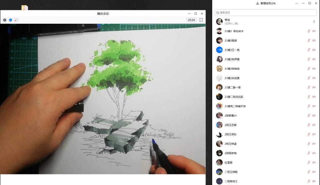 在線上教學(xué)過程中,教師充分利用超星學(xué)習(xí)通中的智慧教學(xué)工具,如:簽到、選人、搶答、投票、主題討論等,提高學(xué)生課程參與度,同時(shí)利用騰訊會(huì)議平臺(tái)進(jìn)行課程直播?!秾I(yè)美術(shù)2》除了要求學(xué)生具備一定的專業(yè)理論之外,還需要學(xué)生動(dòng)手去實(shí)踐,那么教師的現(xiàn)場(chǎng)演示和輔導(dǎo)也非常重要,課程組利用騰訊會(huì)議直播功能演示手繪技法,同時(shí)開啟師生視頻和語音交流,零距離的師生互動(dòng)活躍了課堂氣氛。在輔導(dǎo)環(huán)節(jié),教師通過不同的時(shí)間節(jié)點(diǎn),要求學(xué)生將手繪的作業(yè),分階段發(fā)送到超星學(xué)習(xí)通班級(jí)空間內(nèi),同時(shí)教師利用騰訊會(huì)議共享屏幕對(duì)每位同學(xué)發(fā)送的作業(yè)進(jìn)行詳細(xì)點(diǎn)評(píng)。最后,師生通過超星學(xué)習(xí)通的討論與投票功能評(píng)選出每堂課程的優(yōu)秀作業(yè),并計(jì)入平時(shí)成績(jī)。