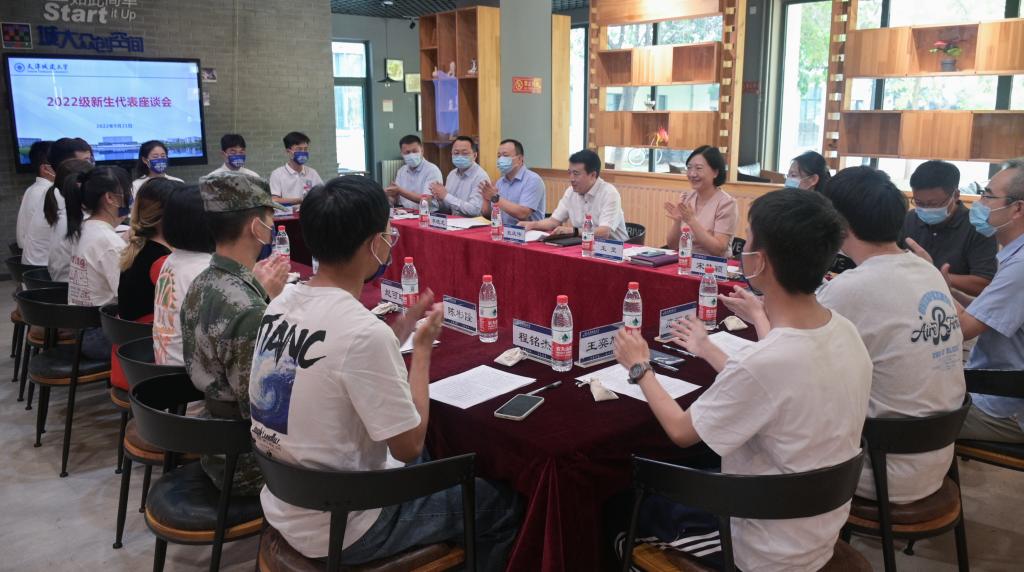 9月21日,學校舉辦2022級新生代表座談會。校黨委書記史慶偉、黨委副書記王罡走進學校眾創空間與14名新生代表圍坐在一起,面對面座談、零距離交流,正面回應學生關切。學校相關職能部門負責人代表參加。