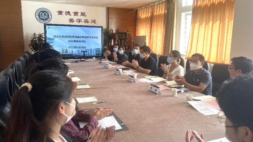 9月28日,副校長陳志華帶領教務處、學工部、校團委相關負責人,赴經濟與管理學院與14名學生代表參加“學風建設專題座談會暨校領導接待日”活動,經濟與管理學院黨政領導班子成員陪同座談。會上,學生代表結合自身學習生活經歷和對未來的規劃,圍繞班風學風建設、教師教學、實踐能力培養、研究生科研與管理等方面,提出相關問題和建議。學院和相關部門結合分管工作就同學們提出的問題進行了一一解答,真正實現了“師生零距離、訴求零門欄、反饋零時差”,打通服務學生“最后一公里”。
