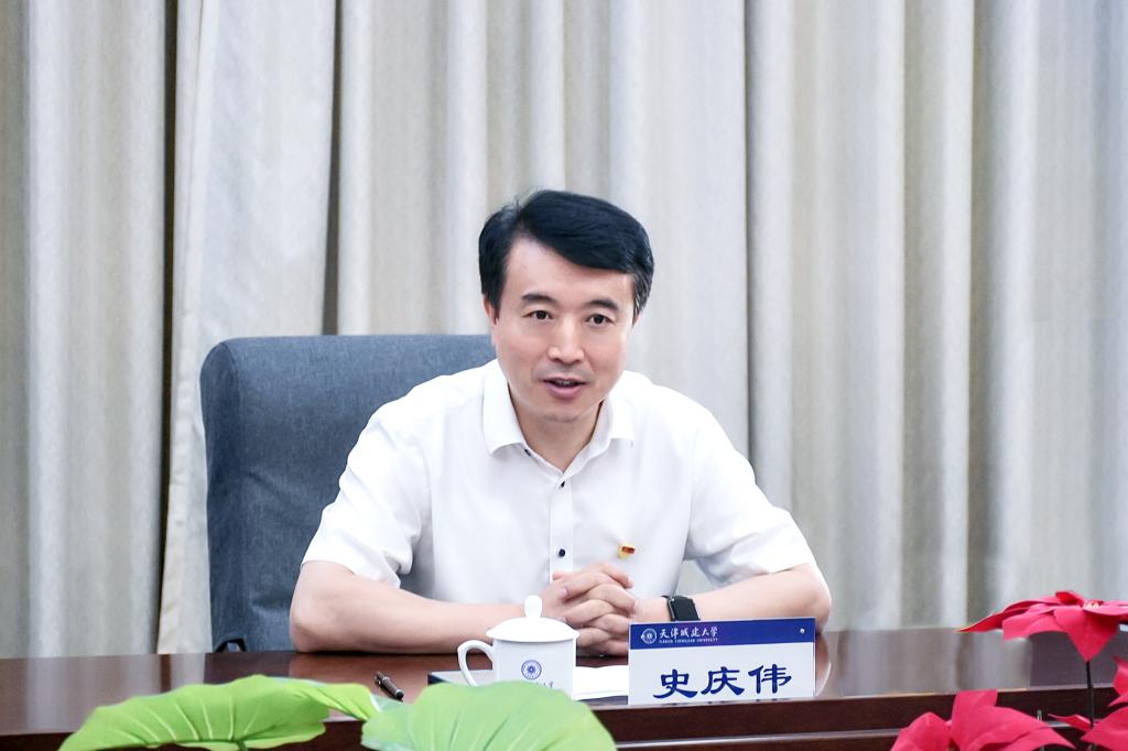 史慶偉與同學們分享在天城大的工作感悟:“初見天城大是為景之美,再見天城大是為意之切,回見天城大是為情之濃,一代又一代的天城大人踐行著“重德重能、善學善建”的校訓精神,展現了天城大人追求卓越,精益求精的風采。希望天城大學子心系“國之大者”,以開拓進取的斗志成為新時代的弄潮兒。”
