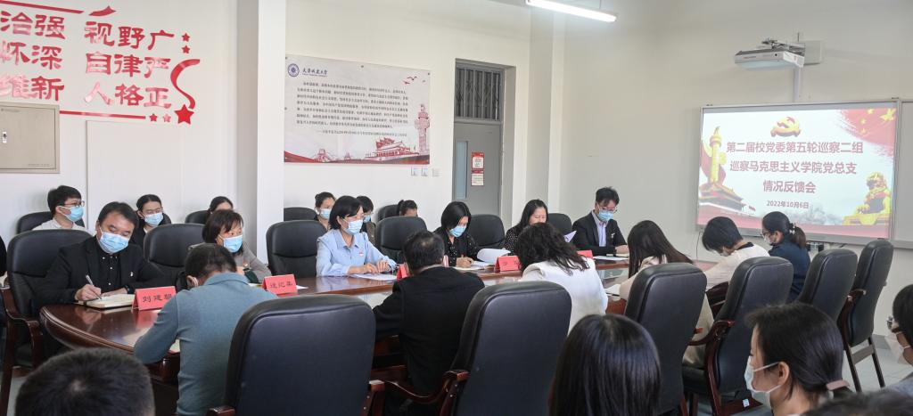 按照學(xué)校黨委巡察工作統(tǒng)一部署,2022年10月6日,第二屆校黨委第五輪巡察二組向馬克思主義學(xué)院黨總支反饋了巡察情況。校黨委副書記王罡出席反饋會(huì),市紀(jì)委監(jiān)委駐學(xué)校紀(jì)檢監(jiān)察組副組長(zhǎng)逯紀(jì)美、巡察工作領(lǐng)導(dǎo)小組成員沙荔、巡察二組組長(zhǎng)李佳,巡察組全體成員,巡察辦、派駐紀(jì)檢組同志、馬克思主義學(xué)院全體教職工參加反饋會(huì)。會(huì)議由馬克思主義學(xué)院黨總支書記高燕主持。