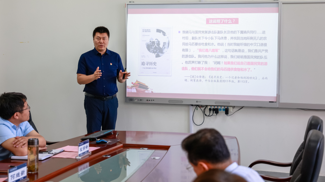 中國近現(xiàn)代史綱要教研室楊賀副教授以《為什么說中國共產(chǎn)黨是中華民族抗日戰(zhàn)爭的中流砥柱》為題開展了集體備課,他圍繞砥柱山巍、穩(wěn)、硬的特征,從“頂天立地、指引方向”“風(fēng)吹雨打、巋然不動”“千磨萬折、百煉成鋼”三個(gè)方面深刻闡述了為什么說中國共產(chǎn)黨是中華民族抗日戰(zhàn)爭的中流砥柱,充分展示了我校思政課教師堅(jiān)持“八個(gè)相統(tǒng)一”原則,精心打磨課程的成果。