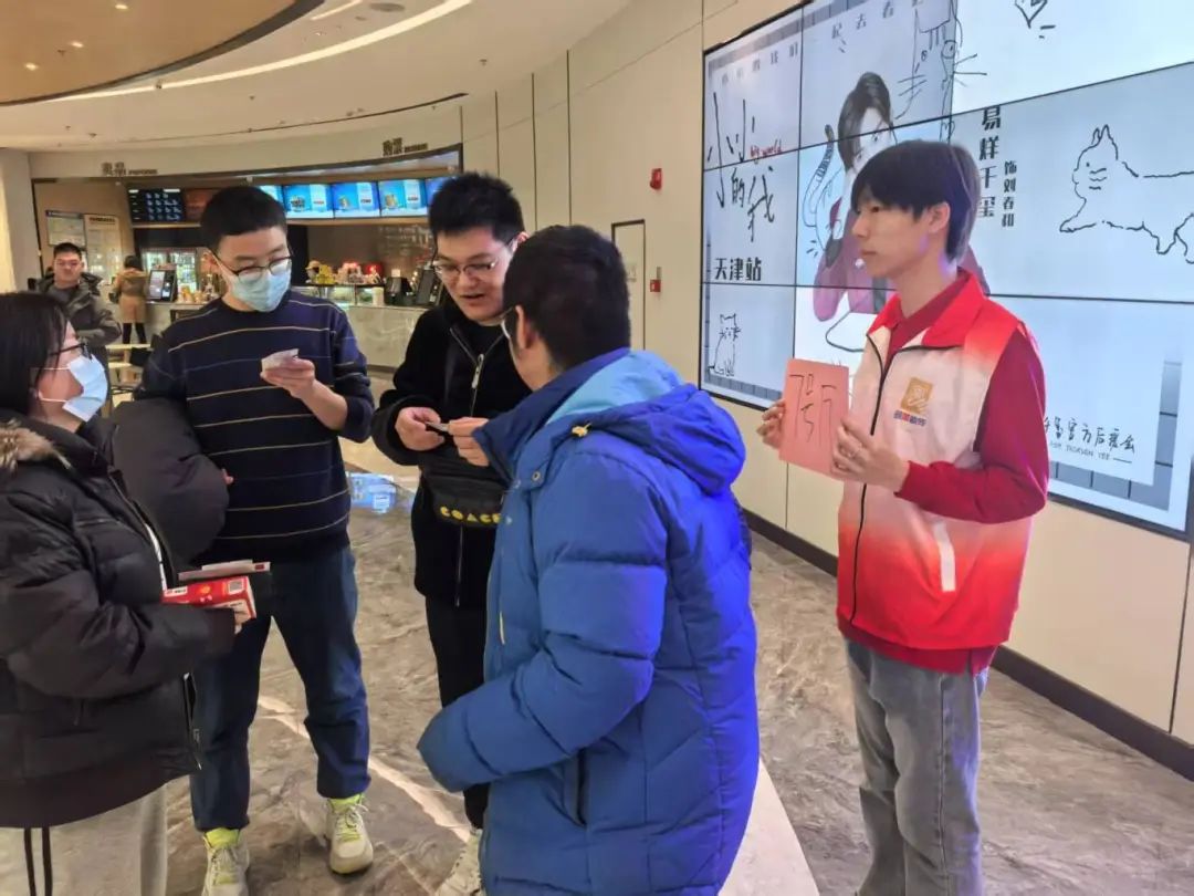 天津創美助殘公益組織在河西區萬象城影院舉辦《小小的我》公益觀影活動,為殘障人士提供暖心觀影服務,薪火班學員作為志愿者全程參與,用行動傳遞冬日溫暖?;顒赢斕?,李澤一、姚鳴哲承擔了影院門口簽到的工作,并協助殘障人士順利入場。此次觀影人員來自不同的殘障群體,包括失語者、聽障者和腦性癱瘓者等。初見他們時,“小火苗”們難免有些拘謹,但很快他們發現,這些殘障朋友與普通觀眾并無二致--他們熱情、開朗,積極表達著自己的想法和訴求。學員們也迅速放松下來,以更加自然、親切的態度投入到工作中,與殘障朋友們展開溫暖的互動。