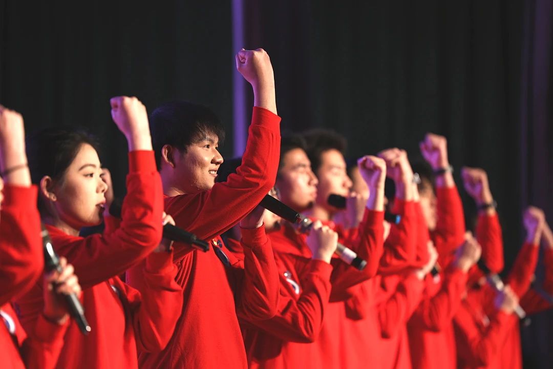活動尾聲,兩期薪火班學員整齊列隊,身姿挺拔。激昂的旋律《強國一代有我在》奏響,他們目光堅定,齊聲高歌,仿佛在向世界宣告新時代青年的使命擔當;他們手臂揮動,動作灑脫,展現出自信與豪邁。“廣大青年要堅定不移聽黨話、跟黨走,懷抱夢想又腳踏實地,敢想敢為又善作善成,立志做有理想、敢擔當、能吃苦、肯奮斗的新時代好青年,讓青春在全面建設社會主義現代化國家的火熱實踐中綻放絢麗之花。”大屏幕上,習近平總書記的寄語振奮人心,現場氣氛被推向高潮,在場的每一個人都深深感受到傳承紅色血脈、擔當強國使命的熱忱與決心。