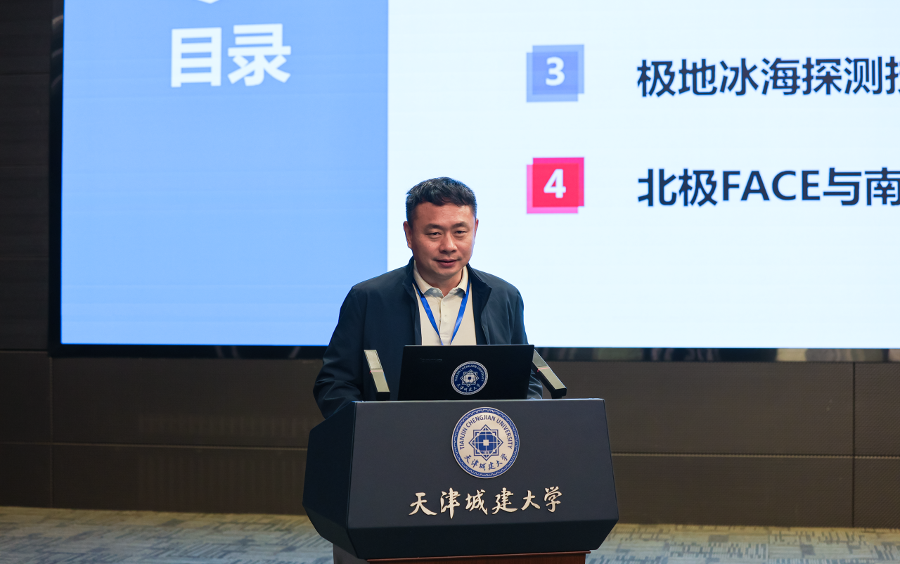 在專題報告環節,程曉以“極地遙感”為題,介紹了近年極地環境變化情況,隨后從極地環境與全球氣候變化、極地空天遙感技術、極地冰海探測技術、FACE追冰計劃等四個方面展開了極地環境綜合治理研究工作報告,重點從構建完整的極地探測技術裝備體系及建立“空-天-冰-海-潛”立體觀測平臺兩方面介紹了極地環境研究工作的重要性和意義。
