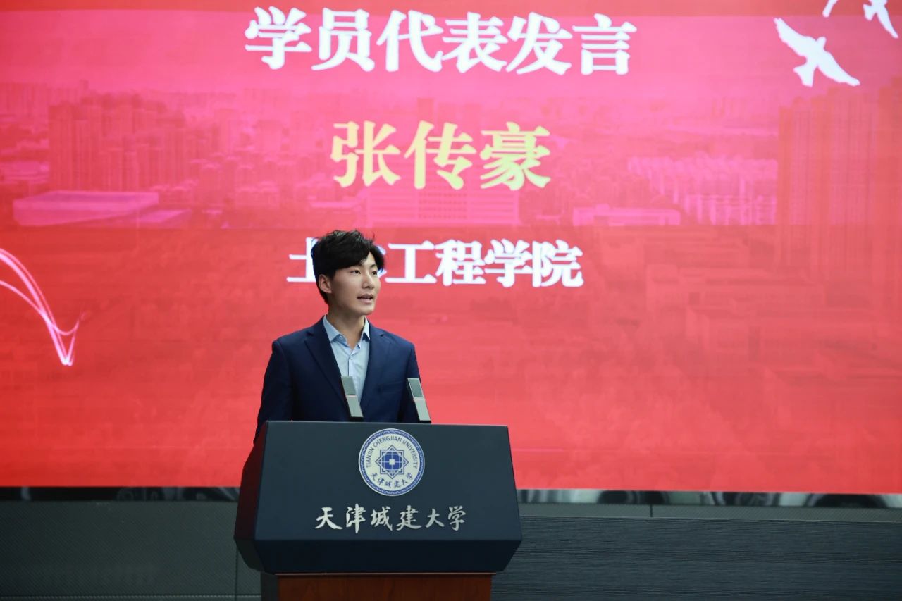 土木工程學院張傳豪代表全體黨校培訓班學員發言,表示將以一名優秀共產黨員的標準嚴格要求自己,深學細悟習近平新時代中國特色社會主義思想,在理論溯源、實踐對照中筑牢信仰之基,彰顯先鋒力量。