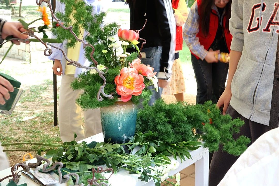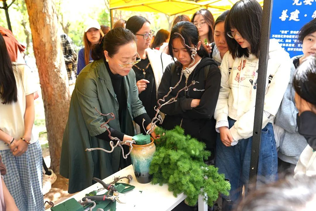 建筑學院卓·築勞動工坊開展“匠心綻放·花藝青春”一非遺插花技藝校園實踐展,師生現場創作花藝作品,融合勞動技能與美學教育,展現青春創意。