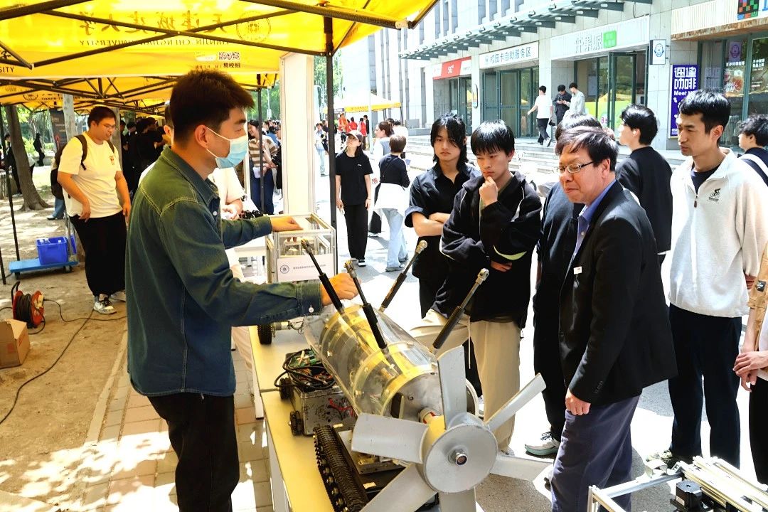 控制與機械工程學院工程機器人創新實踐名師工作坊現場展示工程機器人創新成果,勞動+科技激發學生勞動創新力。