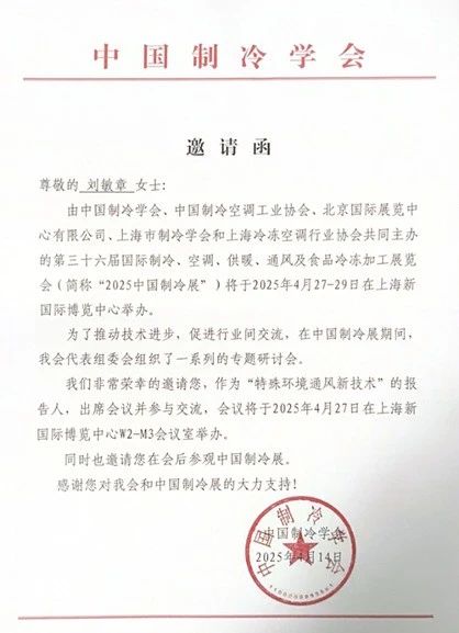 由中國制冷學會、中國制冷空調工業協會、北京國際展覽中心有限公司、上海市制冷學會和上海冷凍空調行業協會共同主辦的第三十六屆國際制冷、空調、供暖、通風及食品冷凍加工展覽會(簡稱“2025中國制冷展”)于2025年4月27-29日在上海新國際博覽中心舉辦。在中國制冷展期間,中國制冷學會代表組委會組織了一系列專題研討會。我校能源與安全工程學院院長楊斌教授、建環系主任劉敏章副教授受邀參會并作專題報告。