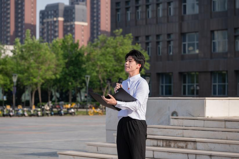 在莊嚴(yán)的國(guó)旗下,計(jì)算機(jī)學(xué)院學(xué)生代表劉潤(rùn)東與李香瑞以《青春中國(guó)》為題,用雄渾豪邁的辭藻,為現(xiàn)場(chǎng)師生徐徐展開一幅幅騰飛中國(guó)的壯美長(zhǎng)卷,用鏗鏘有力的文字,讓在場(chǎng)每一位師生心間激蕩起層層愛國(guó)的澎湃浪潮,久久不能平息。