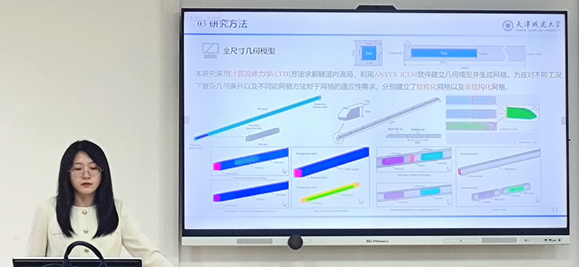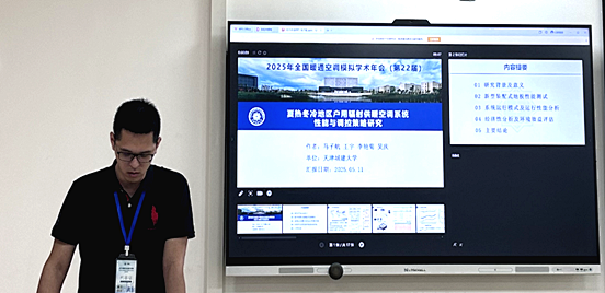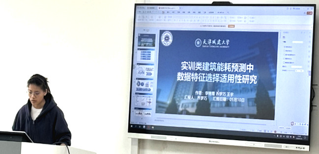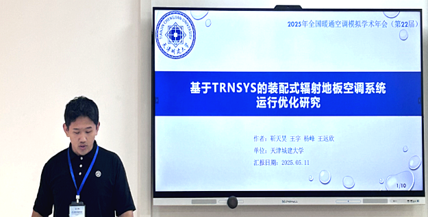 研究生喬夢巧、馬子航、靳天昊、張苡宣分別在“建筑能耗評估與需求響應”、“建筑熱光聲模擬與供熱空調控制”、“人行為與熱舒適模擬”、“室內外空氣流動與環境模擬”分論壇作了題為《實訓類建筑能耗預測中數據特征選擇適用性研究》、《夏熱冬冷地區戶用輻射供暖空調系統性能與調控策略研究》、《基于TRNSYS的裝配式輻射地板空調系統運行優化研究》、《基于數值模擬技術的雙環差速空氣幕系統在手術室內的研究》的專題報告。