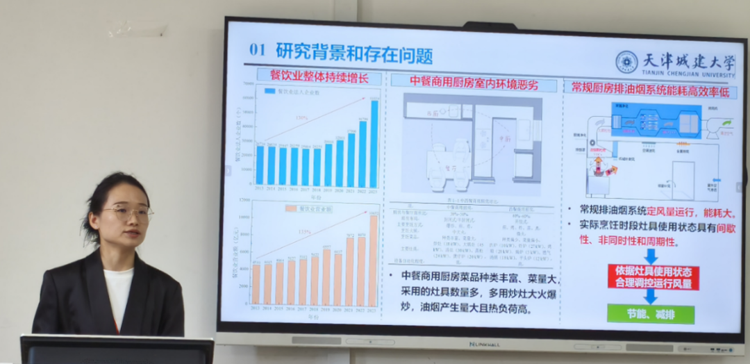 張啊文老師在“供熱、空調系統控制仿真與應用”分論壇中作了題為《中餐商用廚房排風量按需控制研究》的專題報告,針對常規商用廚房集中式排油煙系統存在的問題,結合案例廚房實際運行期間不同時刻灶具使用情況,介紹了依據鍋面和罩內吸風口處環境參數進行風量按需控制的方法。