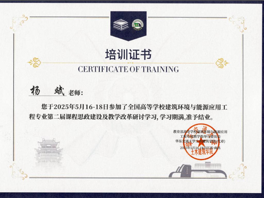 近日,由教育部高等學(xué)校建筑環(huán)境與能源應(yīng)用工程專業(yè)教學(xué)指導(dǎo)分委員會主辦,華東交通大學(xué)土木建筑學(xué)院和基礎(chǔ)設(shè)施智慧建造及運(yùn)行保障現(xiàn)代產(chǎn)業(yè)學(xué)院承辦的全國高等學(xué)校建筑環(huán)境與能源應(yīng)用工程專業(yè)第二屆課程思政建設(shè)及教學(xué)改革研討會在江西省南昌市召開,我校能源與安全工程學(xué)院院長楊斌教授,副院長曹為學(xué)副教授參加會議。