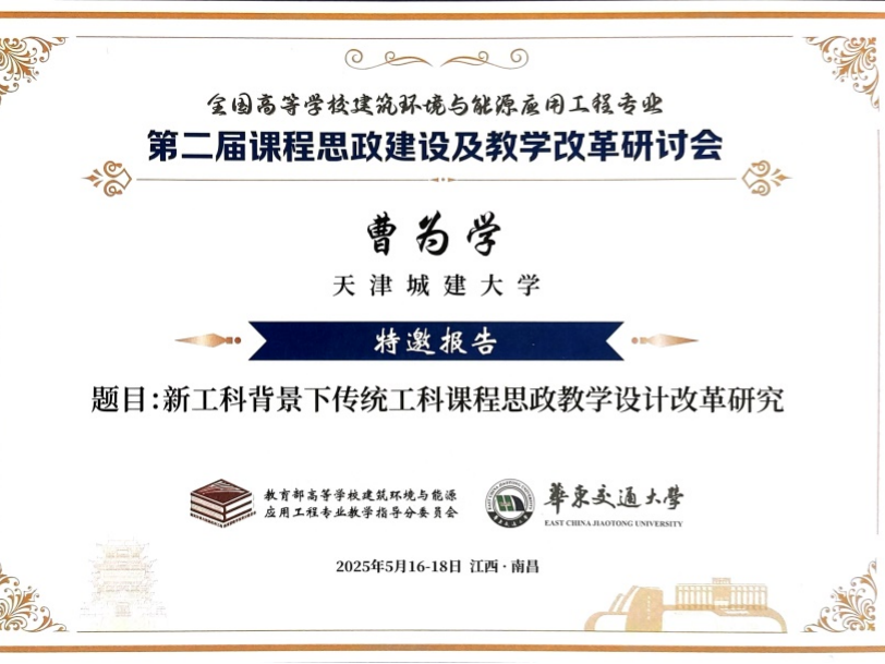 近年來,學(xué)校積極組織相關(guān)專業(yè)教師參與教育部建環(huán)教指委等教學(xué)改革會議,并積極開展學(xué)術(shù)交流匯報,通過校際交流、學(xué)術(shù)研討、標(biāo)準(zhǔn)編制等多種形式深化教學(xué)和課程改革,極大提升了我校在建環(huán)專業(yè)課程思政領(lǐng)域的影響力。未來,學(xué)校將以此為新的起點(diǎn),緊扣國家戰(zhàn)略需求與行業(yè)發(fā)展趨勢,進(jìn)一步深化校際交流合作,為培養(yǎng)更多具備家國情懷、創(chuàng)新精神和國際視野的拔尖創(chuàng)新人才貢獻(xiàn)天城大力量。