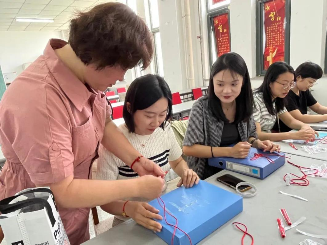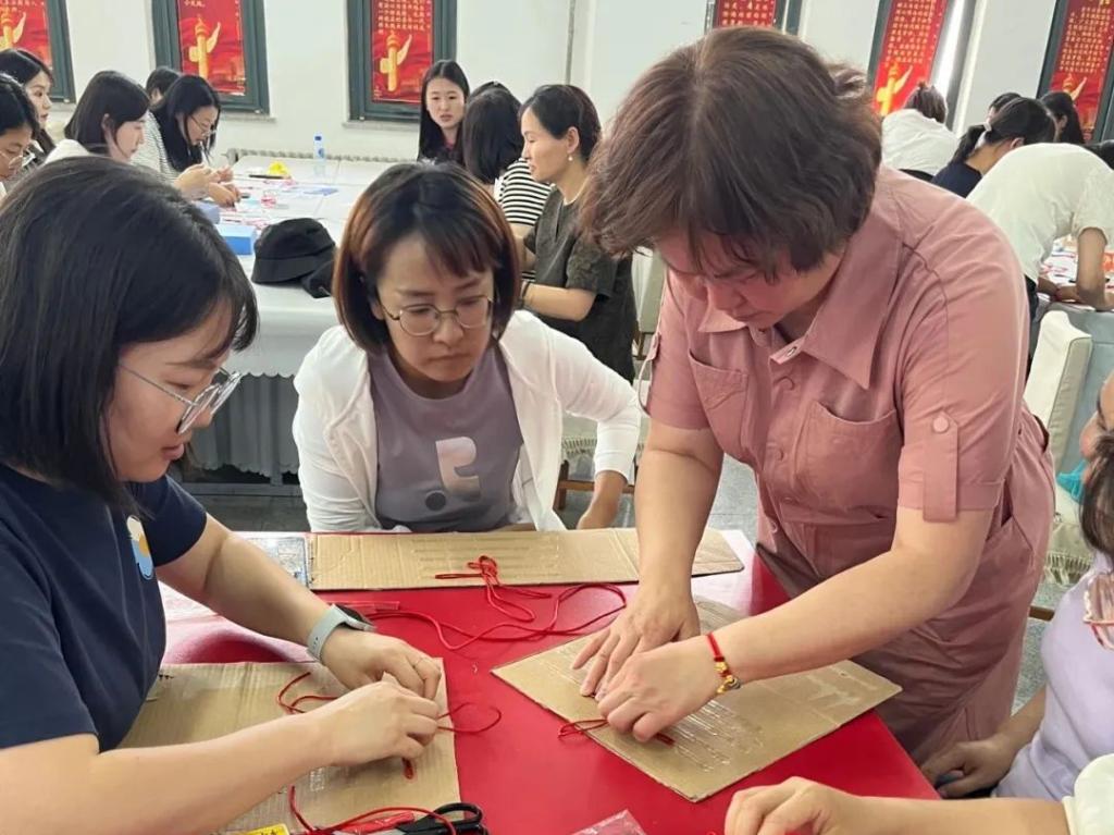 老師們凝神專注,認真研究編織技巧,逐漸掌握了繞繩、壓線、挑線、打結等編織手法。在互相交流經驗的過程中,以紅繩為媒,將祝福融入編織過程,用指尖感受傳統手工技藝的溫度,活動現場氣氛熱烈而溫馨。每一個中國結,都凝聚著參與者的心血與創意,更寄托著對美好生活的向往與祝福。