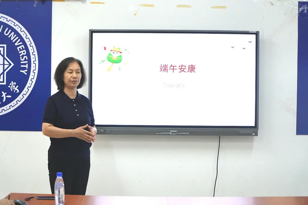 校關工委委員、馬克思主義學院退休教師宋永紅向大家介紹了端午節的由來與歷史典故。她用生動的語言和豐富的歷史知識,將屈原的愛國情懷、端午的民俗傳統娓娓道來,為大家上了一堂別開生面的思政課,激勵同學們做中華優秀傳統文化的傳承者和弘揚者,做擔當民族復興重任的新時代青年。校關工委秘書長、離退休工作處處長張健勝與同學們分享個人經歷,希望同學們厚植愛國情懷,講好民族團結故事,讓民族團結之花在美麗的建園絢麗綻放。