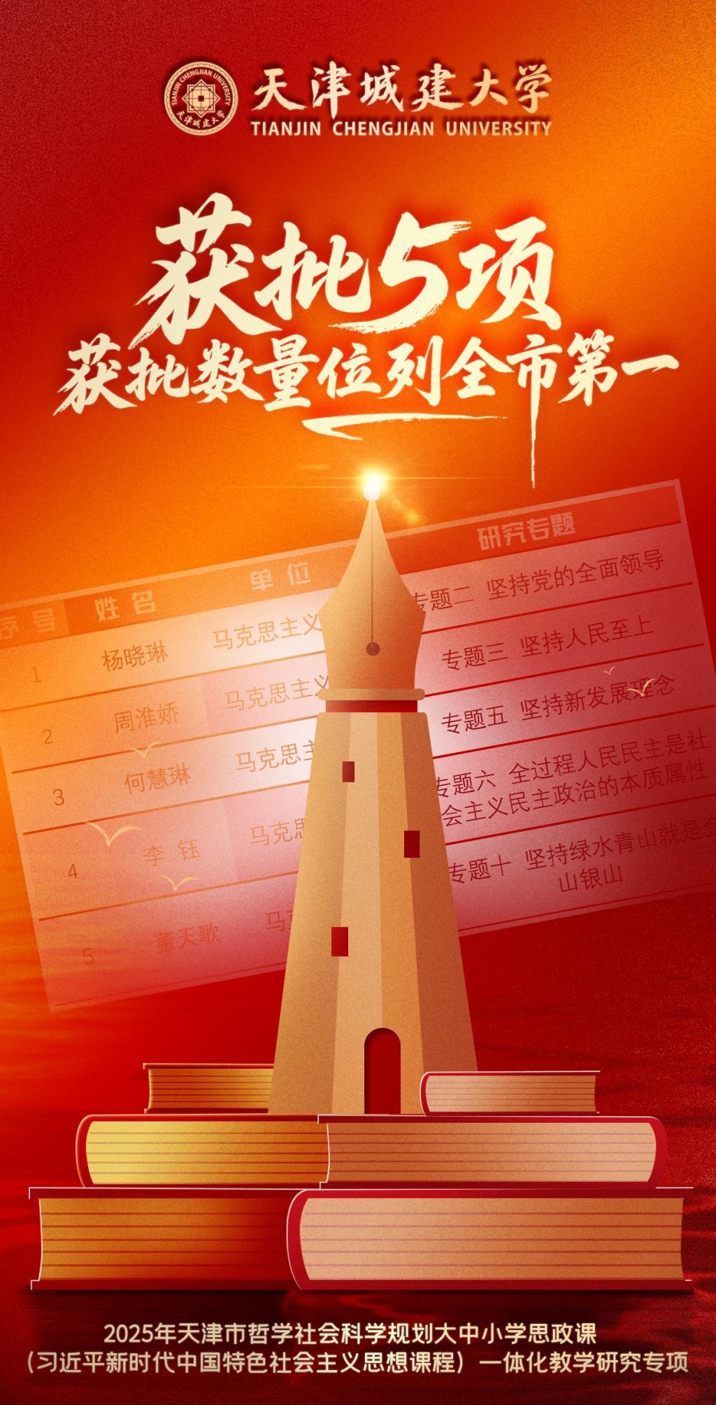 近日,2025年天津市哲學社會科學規劃大中小學思政課一體化教學研究專項立項名單公示,我校獲批5項,獲批數量位列全市第一。