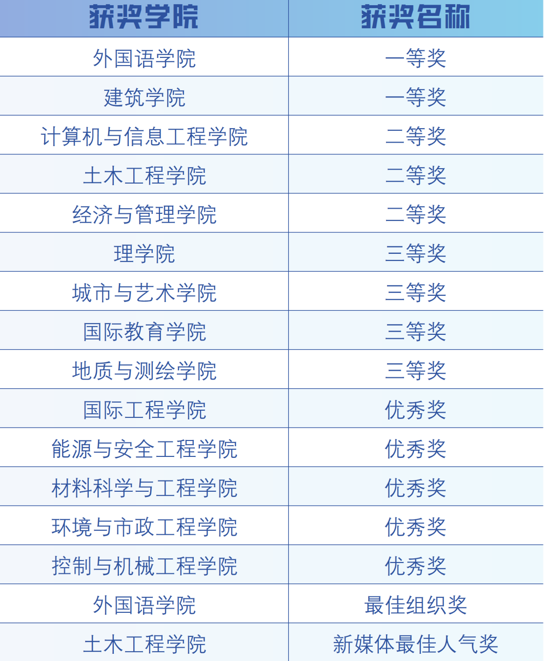 大賽當晚,14支隊伍輪番登場,古典舞的雅致、現代舞的張力、民族舞的熱烈在舞臺上交融綻放,各學院舞者以自由創編展現默契與創意,贏得雷鳴般的掌聲。最終,外國語學院、建筑學院獲一等獎,土木工程學院等三個學院榮獲二等獎,理學院等四個學院獲三等獎,國際工程學院等五個學院獲優秀獎,外國語學院獲最佳組織獎,土木工程學院獲新媒體最佳人氣獎。
