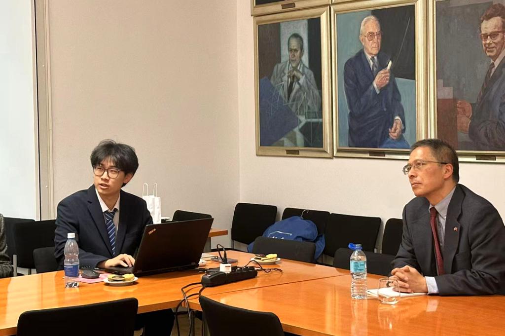 座談會上,天津城建大學國際工程學院隨行教師唐浩首先向田中參贊及使館人員詳細介紹了學院的基本情況,涵蓋合作高校、特色培養模式、學生升學成果、科研項目進展、教學成效以及目前在波學生的學習狀態與生活情況。