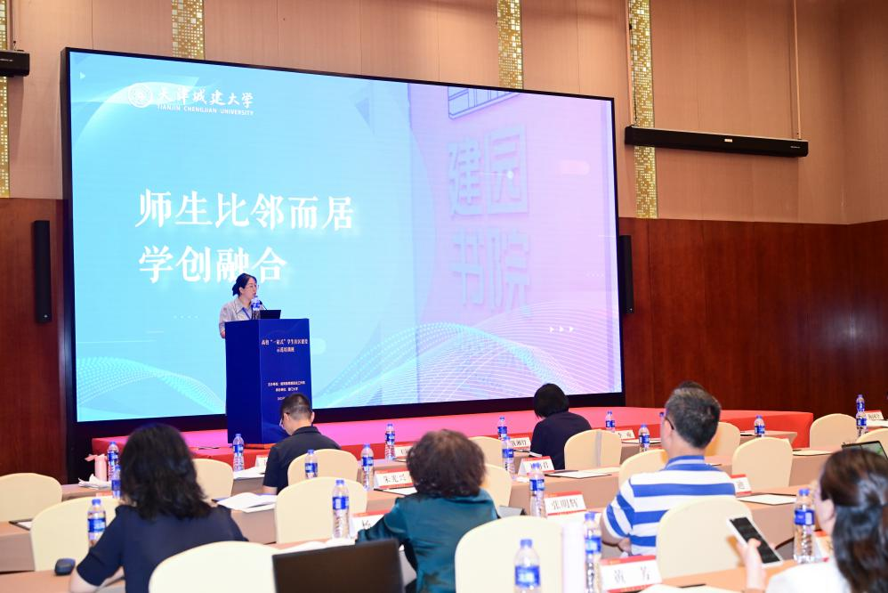 在分組討論階段,我校黨委學工部副部長張曉帆代表華北地區研討組向大會匯報了當前部分地區院校在推進“一站式”學生社區過程中面臨的空間經費、隊伍參與、組織創新、數智建設等方面的問題,提出了對應解決思路,并以天津城建大學為例,介紹了我校以書院制推進“一站式”學生社區高質量建設的經驗做法。