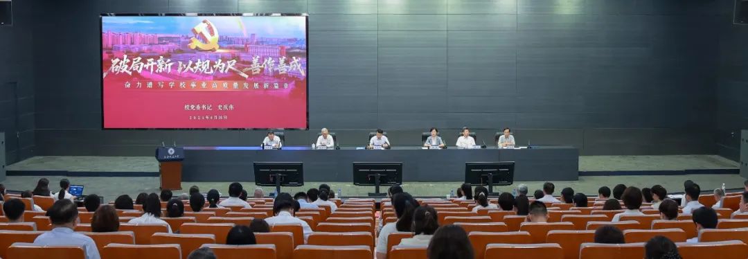 會后,史慶偉以《深入貫徹中央八項規定精神以優良作風推動學校事業高質量發展》為題,從三個方面為全體師生黨員干部講授黨課。一是深學細照、知行合一,深刻把握學習教育的重大意義和實踐要求。教育引導廣大師生黨員深刻領會學習教育的重大意義,精準錨定任務目標,為確保學習教育取得扎實成效、推動全面從嚴治黨向縱深發展提供思想根基和行動遵循。二是以案為鑒、精準施治,以學習教育為契機推動學校作風建設見行見效。深入淺出為大家講解中央和地方通報的典型案例和高校系統內部易發多發的風險點,督促黨員、干部堅決反對特權思想和特權現象,樹牢正確權力觀、政績觀、事業觀,堅持以系統思維一體推進黨風政風、師德師風、校風學風建設,全力營造風清氣正的校園政治生態與優質育人環境,守護教育事業的神圣凈土。三是作風破局、改革攻堅,以學習教育新成效賦能學校事業高質量發展。緊扣“立德樹人”根本任務,以優良作風不斷加強黨的建設,深入推進學科建設和科技創新,持續打造高素質專業化的教師隊伍,全面提升學校管理水平,讓學習教育成果轉化為優化治理、服務師生、推動事業高質量發展的實際效能。