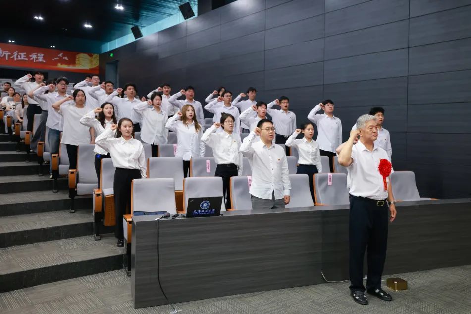 計算機與信息工程學院黨委副書記、院長劉樹東帶領新發展黨員代表面向鮮紅的黨旗莊嚴宣誓,字字鏗鏘的宣誓聲穿透會場。“我志愿加入中國共產黨” 的誓言擲地有聲,表達了他們加入中國共產黨的堅定決心,許下了對黨忠誠,不負人民的鄭重承諾。在場的同志深受鼓舞與教育,整個會場涌動著 “以信仰之光照亮新征程”的澎湃力量,激勵全體同志以更堅毅的步伐書寫踐行初心的答卷。