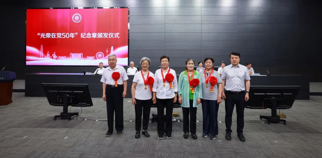 史慶偉為4名老黨員頒發“光榮在黨50年”紀念章,現場響起最熱烈而持久的掌聲,向老黨員致以崇高的敬意和衷心的祝福。