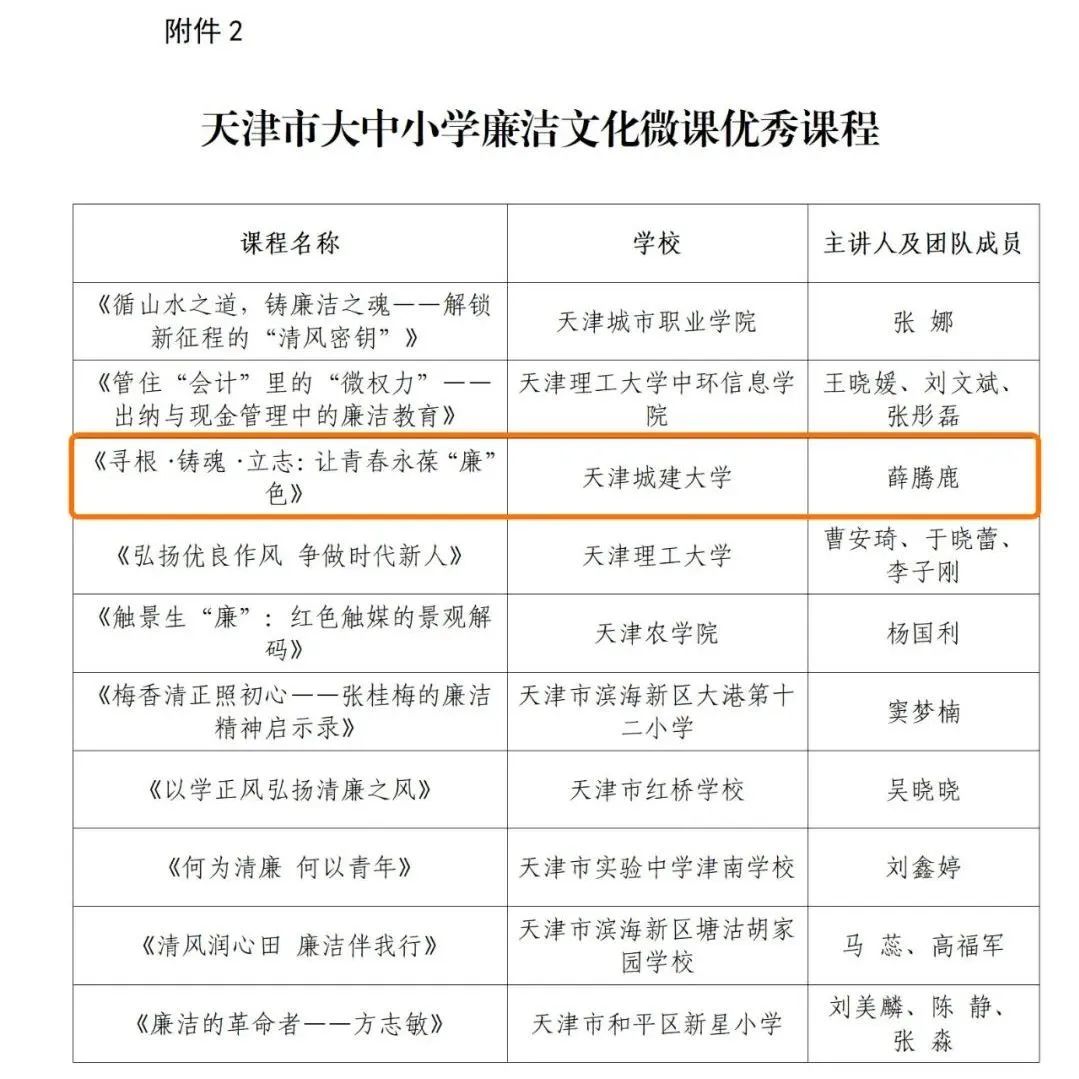馬克思主義學(xué)院教師薛騰鹿主講的廉潔網(wǎng)絡(luò)微課《尋根·鑄魂·立志:讓青春永葆“廉”色》獲評(píng)天津市大中小學(xué)廉潔文化微課優(yōu)秀課程
